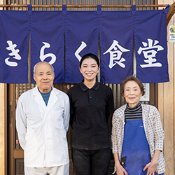 千葉県長生郡長生村生まれ。小学校3年生まで東京で過ごし、家族とともに長生村へ。ダイビングインストラクターとして働いたのち、21歳で「きらく食堂」を継ぐ。現在は祖父母とともに店に立ち、3代目として厨房を切り盛りしている。 https://www.instagram.com/kiraku823/