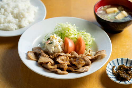 長生村・八積駅前で長く親しまれてきた、昔ながらの食堂。昼は定食、夜は居酒屋として、気取らない料理と酒を楽しめる。